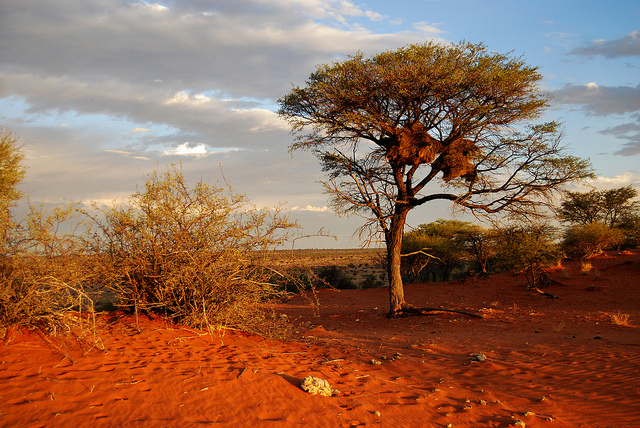 In the wetter north and east, open woodlands exist, made up mainly of a type of acacia known as the camelthorn tree. Endemic to the Kalahari, the camelthorn is a crucial part of the desert ecosystem, manufacturing nutrients that encourage other plants to grow around its base and providing shade for animals.
